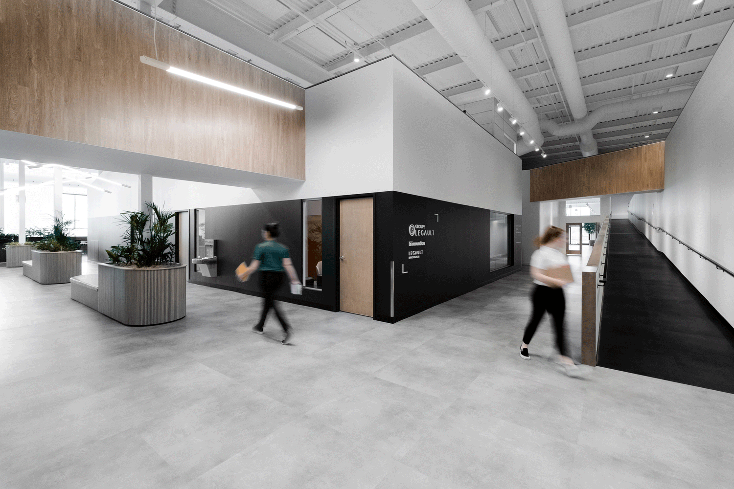 Situé sur le bord d’un lac naturel, le nouveau siège du Groupe Legault de 40 000 pi2 fenêtré prend forme à Anjou, sur l’île de Montréal. Une entreprise familiale 100 % québécoise dont la quatrième génération vient de prendre le contrôle célèbre en grand avec un nouveau siège social de 16 millions. Ils ont engagé des firmes locales pour les épauler, comme Artopex, entreprise familiale d’ici qui a conçu du mobilier personnalisé. D’autres, comme Lauréat Pépin, Folio Design et Emblm, ont aussi participé à la création du siège social.